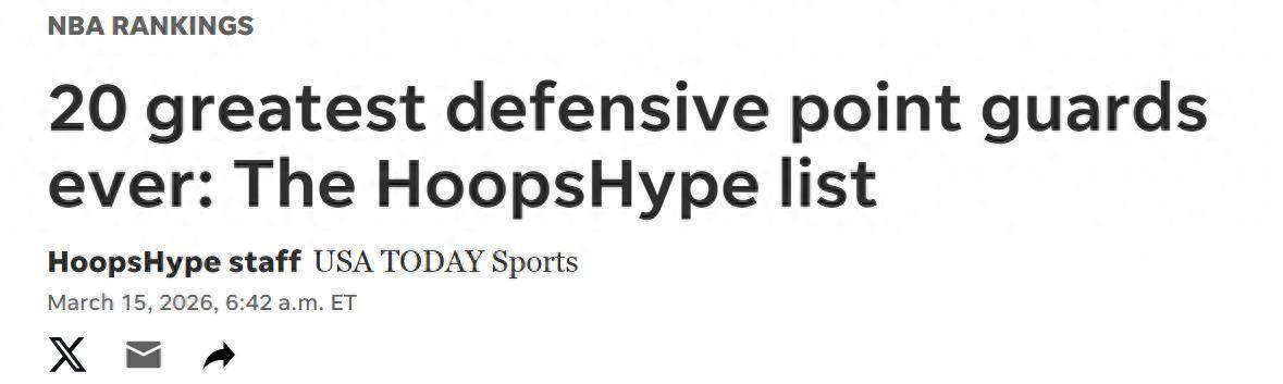 在常规赛进入冲刺阶段之际,美媒《hoopshype》结合最新表现更新评选出NBA防守型控卫TOP20名单,其中现役三人入选,隆多第9保罗第5朱霍勒迪高居第三。